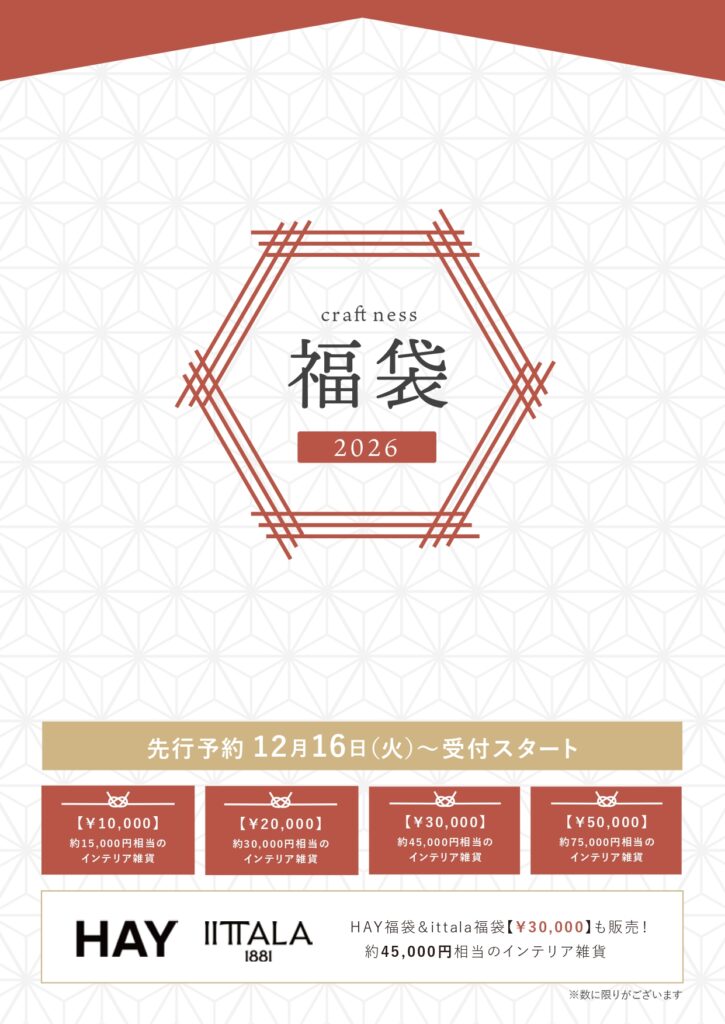 家族や友人、そして自分へのご褒美にもぴったりなアイテムが見つかります!今年の初売りはcraft nessへ!