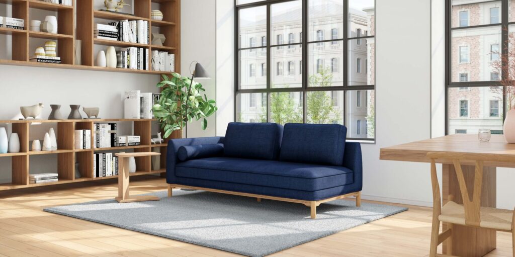 細部まで拘ったデザインと丁寧に削り出された素材感が上質なソファ。