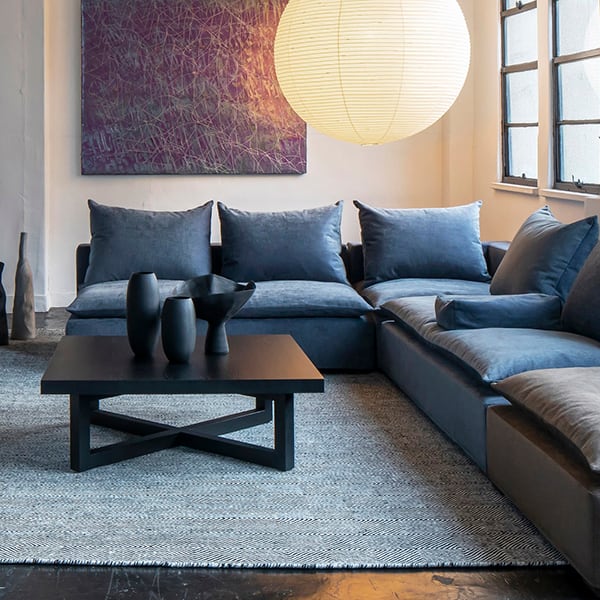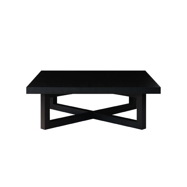 天板の厚みと脚のクロス部分との絶妙なバランスがシャープな印象と重厚感を演出。十字を描いた脚はしっかりと天板を支えており、重厚感も備えたモダンでスタイリッシュな格好いいリビングテーブルに仕上がりました。